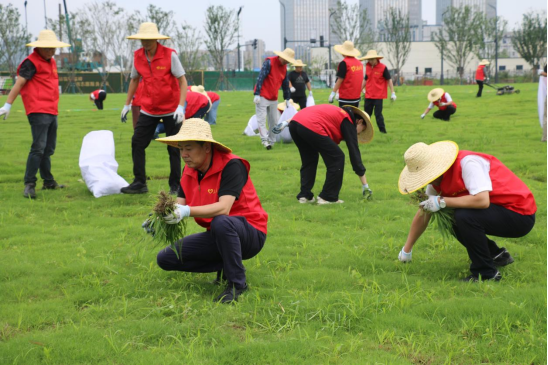 最后,全体人员开展“绿植养护践初心” 活动。大家手持工具,分工合作,对项目现场的杂草进行清理。烈日下,大家不怕脏、不怕累,虽然汗水湿透了衣衫,但干劲十足。经过一番努力,现场环境焕然一新,大家用实际行动为项目绿化贡献力量,践行党员的初心和使命。